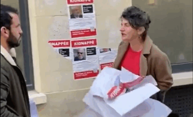 Ce mardi 7 novembre 2023, Sophie Pommier, une ancienne collaboratrice du quai d’Orsay a été filmée en train de décrocher des portraits d’otages du Hamas à Paris.