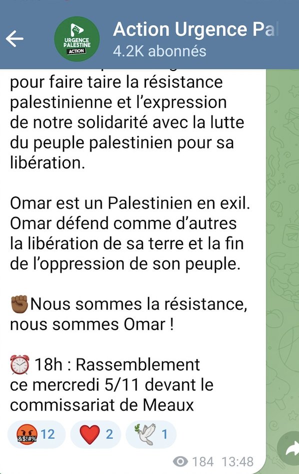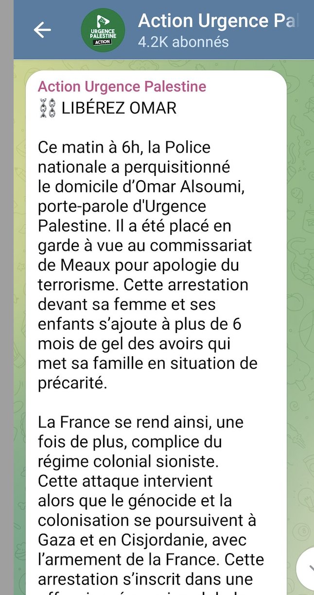 JUGE COUPABLE -Excellente nouvelle. Nous apprenons à l’instant le placement en garde à vue d’Omar Alsoumi pour apologie du terrorisme