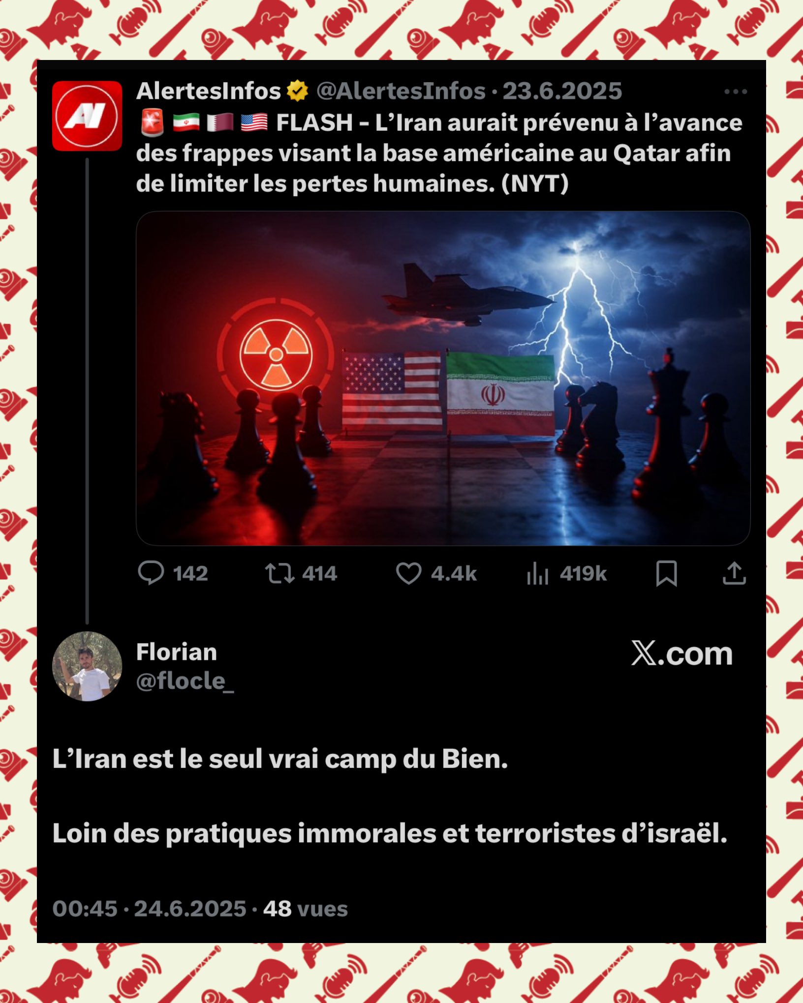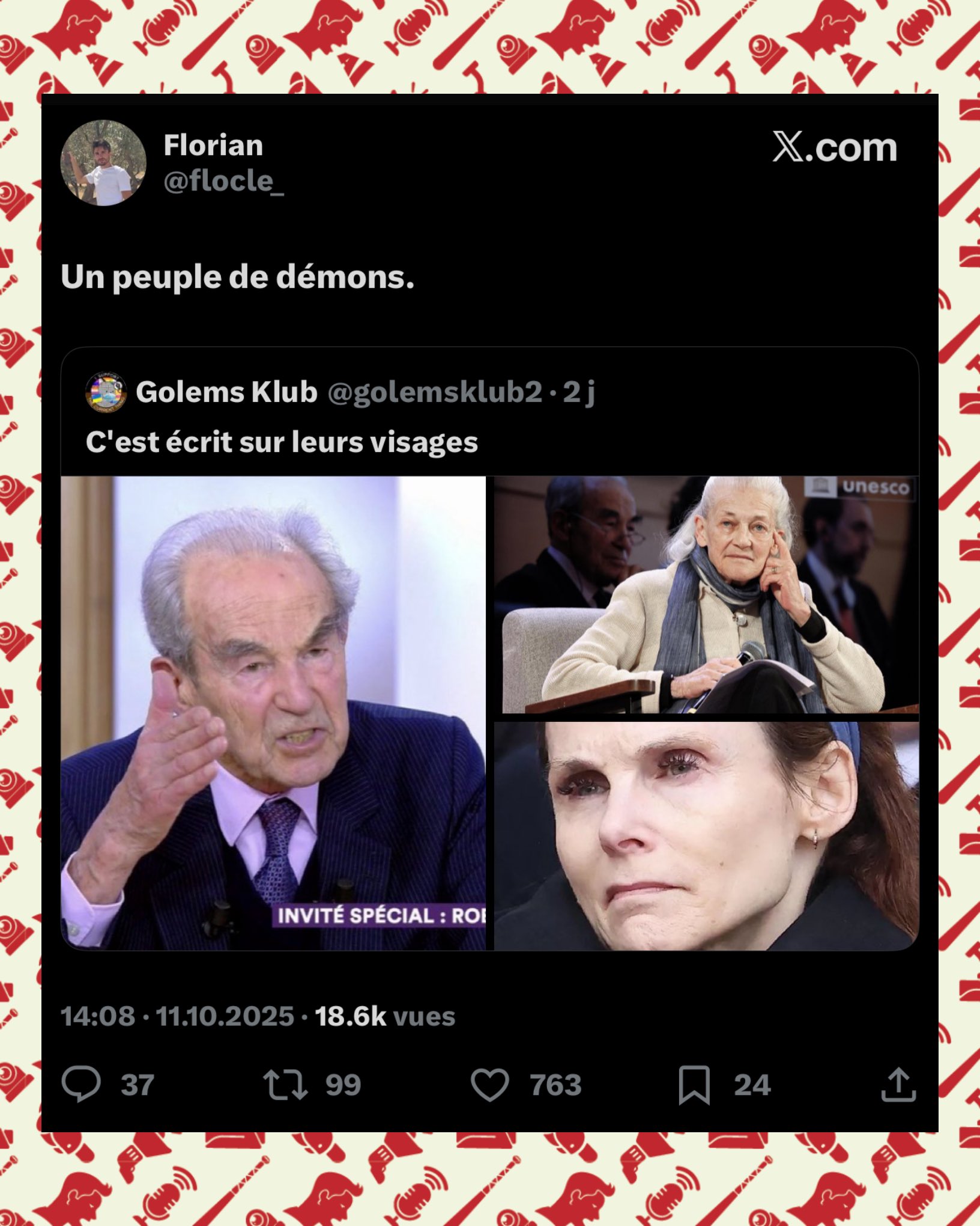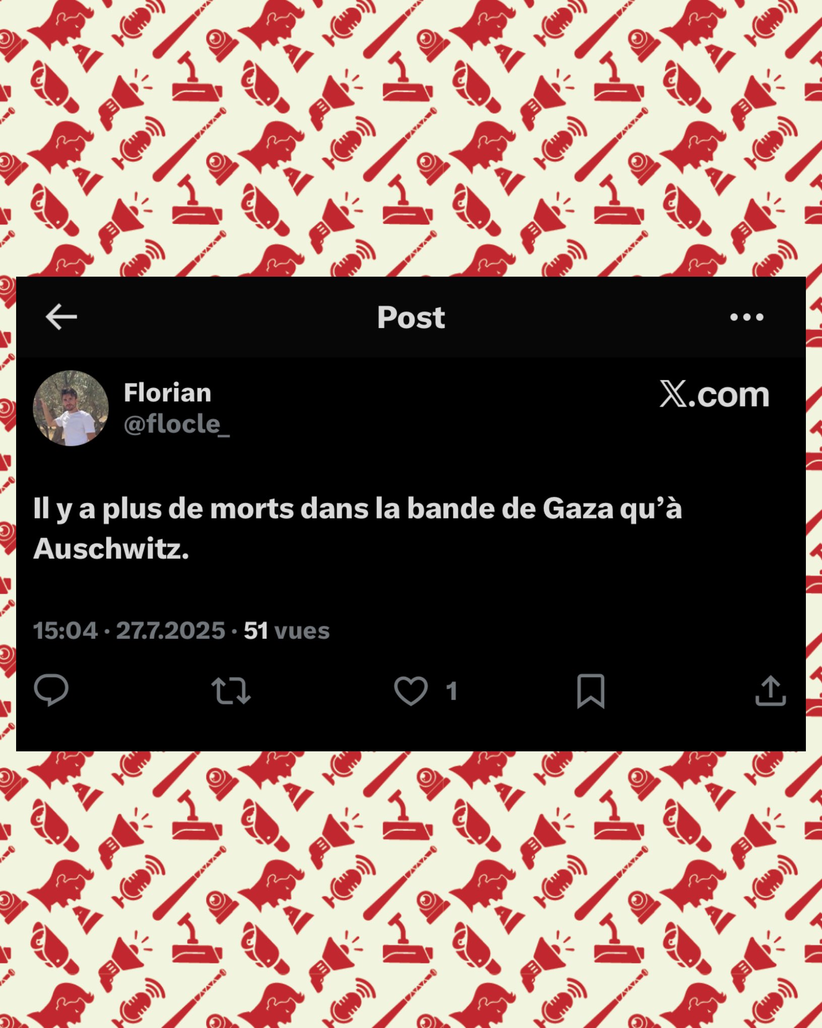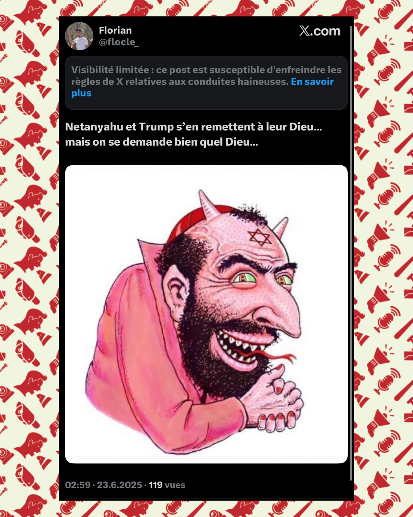 Pour information : le compte agent ananas (pas choisi au hasard le pseudo) sur le site antisémite hamas vox, utilise EXACTEMENT les mêmes PROPOS (et ce n’est pas la 1ère fois), mais ne RISQUE RIEN car ce site antisémite est COUVERT par ses partenaires ! https://archive.ph/9mUWr