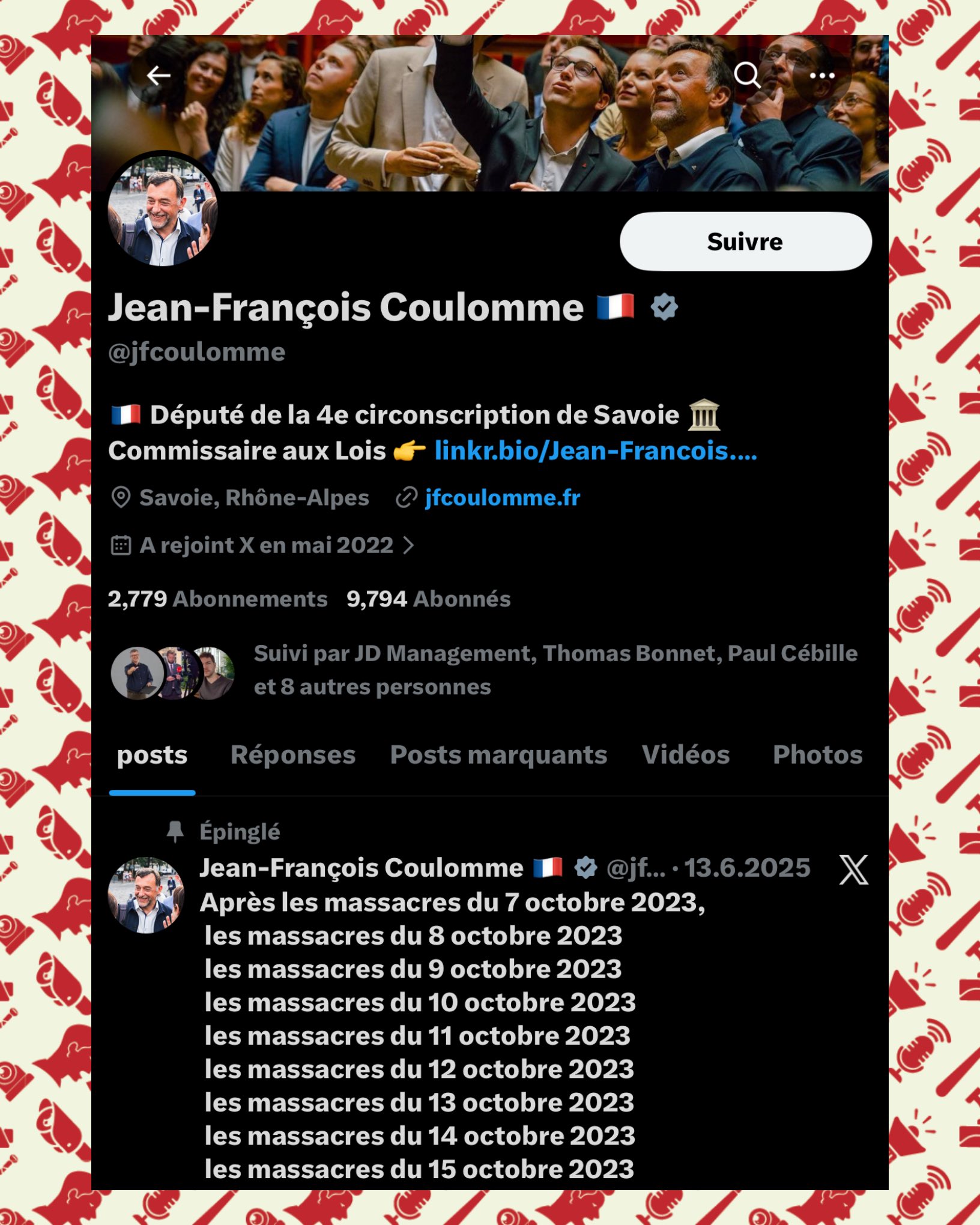 SwordOfSalomon-SIGNALEMENT : Jean-François Coulomme , député LFI qui depuis le 7 octobre vomit sa haine des Juifs