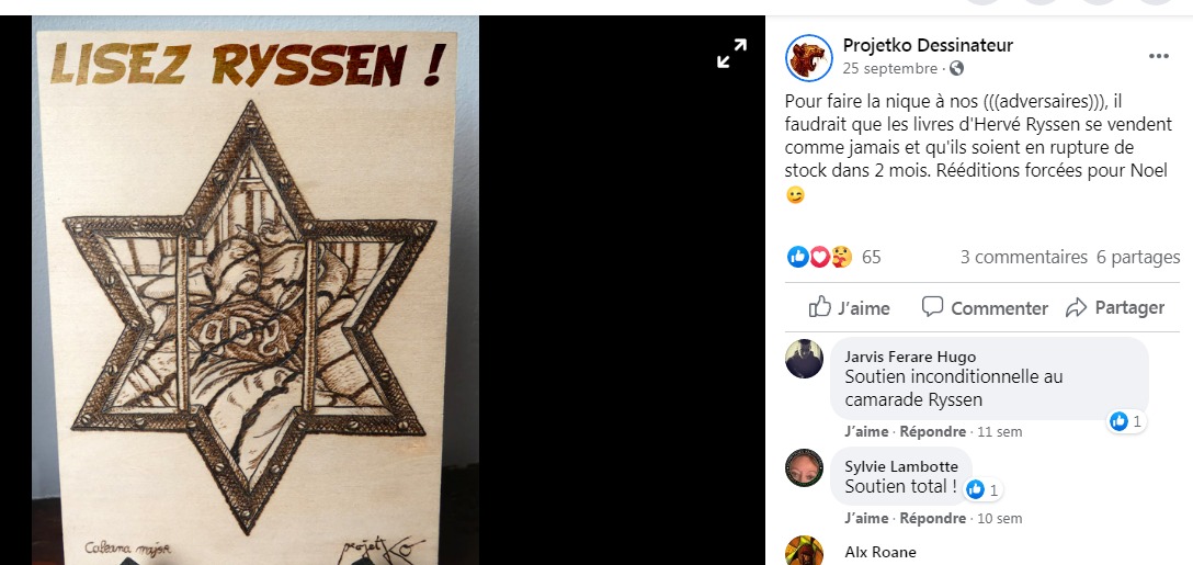Soutien inconditionnel à Hervé Ryssen, Projet KO, s’occupe de la promotion des Torchons Antisémites de ce dernier https://www.facebook.com/photo.php?fbid=930568797468245&set=pb.100015453996193.-2207520000..&type=3