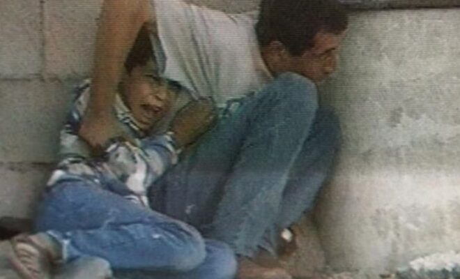 Le bandeau rouge c’est le symbole des membres du fplp et ca c le cercueil d’un bebe de...