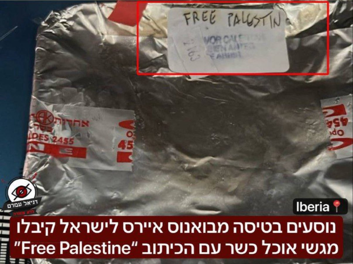 Des plateaux-repas cachers avec l’inscription Free Palestine dans un vol Iberia