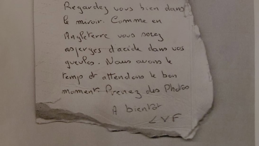 «Islamo gauchos avec vos drapeaux palestiniens», «traîtres de la France», «Nous connaissons Gaza et vous seriez leurs jouets», les menaces visent les habitants qui ont affiché à leur fenêtre des drapeaux palestiniens, en soutien au peuple gazaoui. Les propos sont particulièrement violents : «Comme en Angleterre, vous serez aspergés d’acide dans vos gueules», «vous êtes suivis et observés», «nous attendons le bon moment».